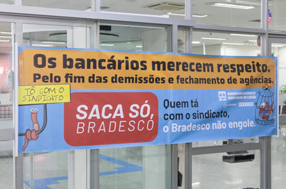 As demissões e o fechamento de agências do Bradesco voltaram a ser alvo de protestos nesta quarta-feira, 19 de novembro, Dia Nacional de Luta. Em Campo Grande, o ato do Sindicato dos Bancários de Campo Grande-MS e Região foi na unidade bancária na esquina das Avenidas Afonso Pena e Calógeras.