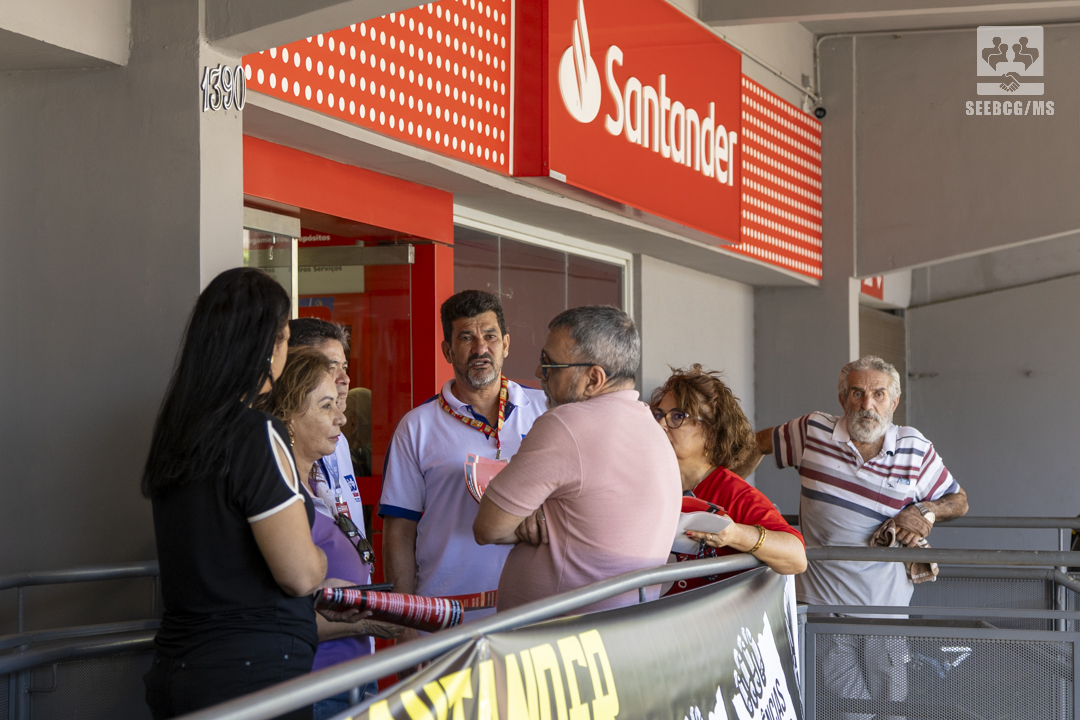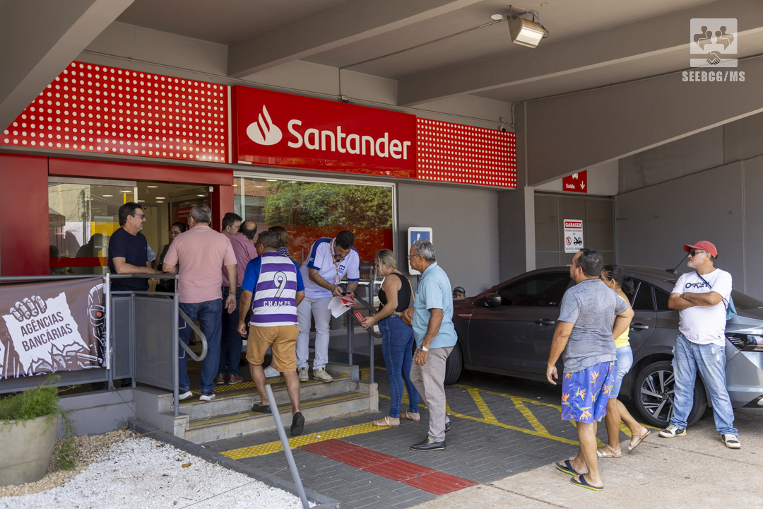 “Nossa paralisação é em virtude da atitude que o banco Santander tem tomado, cometendo infrações graves como contratações fraudulentas, demissões e fechamento de postos de atendimento. Essa é uma gestão que tem prejudicado a população e que tem gerado o adoecimento dos trabalhadores, vítimas das cobranças abusivas de metas. Vamos continuar lutando para que o Santander pare com essa arbitrariedade e garanta mais contratações e agências de portas abertas para a sociedade”, disse a presidenta do SEEBCG-MS, Neide Rodrigues.