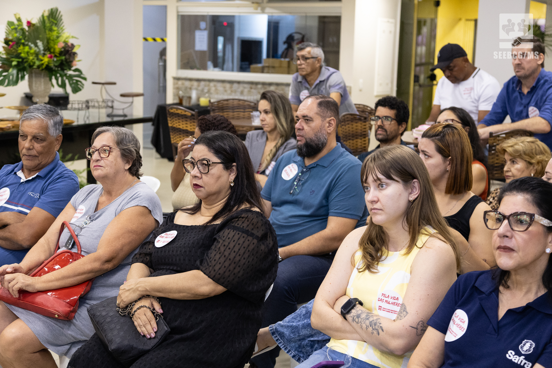“Este é um sindicato de luta e reflexão. Abrimos nossas portas hoje para dizer que não aceitamos mais a violência contra a mulher e ficamos felizes em ver que os homens também vieram somar nessa causa”, afirmou a presidenta do sindicato, Neide Rodrigues. “Estaremos sempre na linha de frente para defender cada trabalhadora, garantindo que nenhuma de nós passe por situações de violência”, disse.
