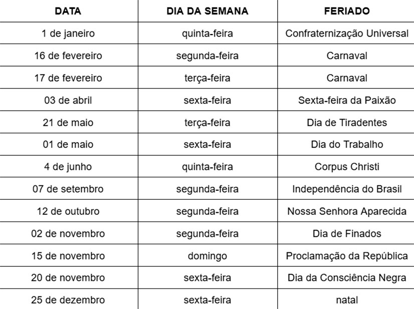 O calendário de feriados bancários segue a Resolução n.º 4.880, de 23 de dezembro de 2020, do Conselho Monetário Nacional, que não considera dias úteis para fins de operações bancárias sábados, domingos e feriados de âmbito nacional.