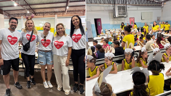 Sindicato Solidário leva alegria da Páscoa para crianças da Amati no Aero Rancho