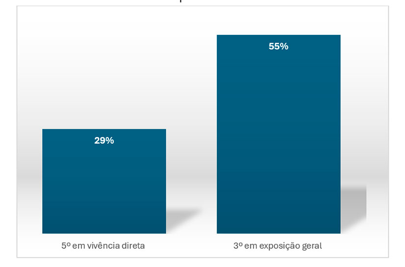 ○ 5º em vivência direta (29% foram vítimas)