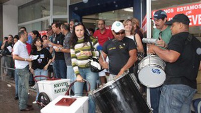 Ao som do grupo de pagode Daran e Cia, os grevistas chamaram a atenção. Entregaram panfletos explicando porque a greve continua e distribuíram 500 picolés. Além disso, um carro de som a todo momento informava as principais reivindicações da categoria. O presidente do Sindicato dos Bancários de Campo Grande, Clementino Pereira, compara a frieza do picolé com a dos banqueiros. “Esperamos que as manifestações desfaçam a frieza dos banqueiros que em todas as rodadas de negociações não aumentaram se quer um centésimo dos 4,5% de reajuste”, explica o presidente.