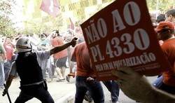 Sob repressão e gás de pimenta, CUT impede votação do PL da terceirização