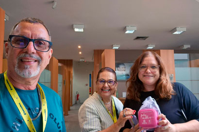 Além do presente, foram distribuídas cartilhas informativas que destacam as conquistas históricas da categoria em prol dos direitos femininos e o combate à violência de gênero, reforçando o papel do sindicato na promoção da informação e do diálogo.