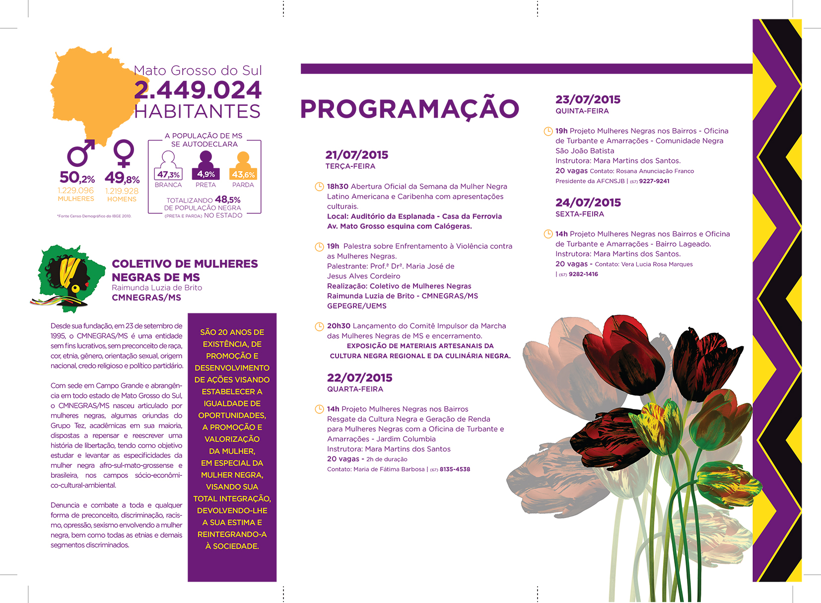 O Coletivo de Mulheres Negras - CMNEGRAS/MS”RAIMUNDA L. DE BRITO realizará hoje,terça-feira (21), em Campo Grande-MS, a abertura oficial da Semana da Mulher Negra, que comemora-se dia 25 de julho o Dia Internacional da Mulher Negra Latino Americana Caribenha.