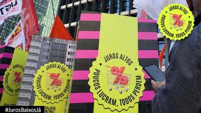 O protesto é pela redução da taxa básica de juros (Selic), hoje em 15% - o maior nível que o índice já alcançou em quase 20 anos.
