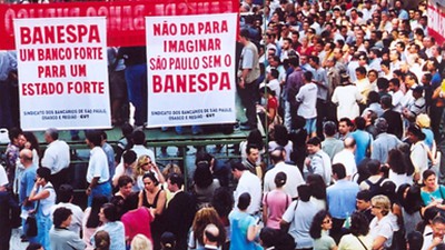 Os bancários tinham feito um movimento vigoroso de resistência, desde a intervenção do Banco Central, no final de 1994. Os sindicatos e a Afubesp conquistaram várias liminares e decisões judiciais, ganhando apoio na sociedade e forçando sucessivos adiamentos do leilão.