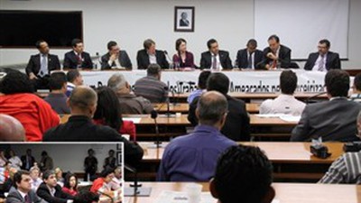 Foi lançado na manhã desta quinta-feira (17), em Brasília, o Fórum em Defesa dos Direitos dos Trabalhadores Ameaçados pela Terceirização. Com participação da CUT e da Contraf, o fórum visa articular os setores da sociedade na luta contra às tentativas de viabilizar a terceirização precarizando os direitos dos trabalhadores. O fórum reúne representantes das Universidades de Campinas (Cesit/Unicamp e IFCH/Unicamp), Federal de Minas Gerais e Federal da Bahia, do Dieese, da CUT, da CTB da Associação Nacional dos Magistrados do Trabalho (Anamatra) e da Associação Latino-americana de Juízes do Trabalho. "O objetivo é ampliar o debate sobre esse tema fundamental. A sociedade brasileira precisa participar do debate sobre a terceirização, que pode alterar completamente as relações de trabalho, com prejuízo para os trabalhadores", afirma Miguel Pereira, secrtário de Organizaçaõ da Contraf-CUT, que esteve presente no ato de lançamento do Fórum. As entidades lançaram um manifesto público e um abaixo-assinado para pressionar o governo federal e o Congresso sobreo tema. Os representantes do Fórum criticam, especialmente, a proposta do deputado Roberto Santiago (PV-SP), um substitutivo ao Projeto de Lei 4330, do deputado Sandro Mabel (PMDB-GO), que acaba com o conceito de atividade-meio e atividade-fim, liberando a terceirização para todas as atividades. Segundo os representantes do Fórum, esta proposta é um enorme retrocesso para as relações de trabalho no Brasil e vai contribuir para aumentar a precarização do trabalho. > Clique aqui para assinar o abaixo-assinado. O grupo vai pedir uma audiência com o presidente da Câmara, deputado Marco Maia (PT-RS), e com o ministro Gilberto Carvalho, da Secretaria Geral da Presidência da República, para cobrar uma regulamentação da terceirização que garanta os direitos dos trabalhadores. Além disso, foi aprovada também a realização de um seminário sobre a terceirização no Brasil, com data indicativa para março de 2012. "Agora é fundamental o envolvimento e mobilização de todas as entidades em torno da regulamentação da terceirização no Congresso, particularmente a votação do substitutivo de Roberto Santiago na Comissão Especial da Câmara, no dia 23 de novembro", diz Miguel. "É importante que os dirigentes e entidades sindicais bancários participem buscando assinaturas para a petição on-line e pressionando os deputados", afirma. Miguel informa ainda que a CUT vai lançar uma campanha nos próximos dias para que o debate chegue aos locais de trabalho. Fonte: Contraf-CUT
