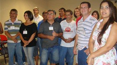 Iaci (na frente, 2ª da esq. p/dir.) anuncia criação de diretoria de saúde no Sindicato