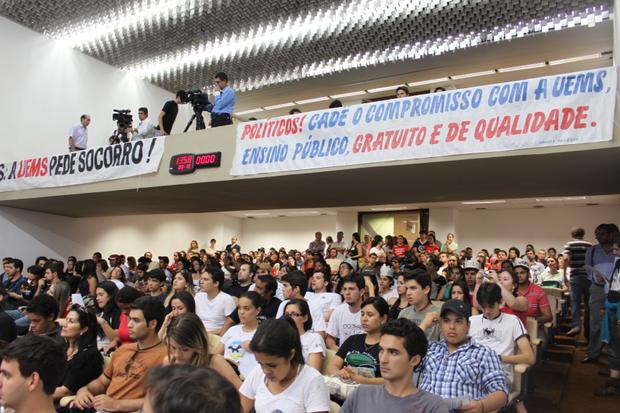 Ao desatrelar a indexação do índice de 2% de repasse do orçamento do Estado, o Governo Estadual inviabilizou a capacidade de gestão e funcionamento da UEMS, sucateando a universidade. Este ano a situação se agravou com o corte de 20% de investimento feito pelo Governo do Estado para todos os órgãos estaduais. Esta situação gerou um déficit ainda maior nas contas da UEMS.