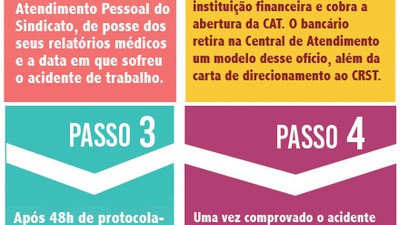 Atenção – É importante ressaltar que o trabalhador vítima de acidente de trabalho não deve deixar para solicitar a CAT de última hora. O processo junto ao CRST e às instituições bancárias envolve prazos que precisam ser respeitados. Somente em situações emergenciais, o Sindicato abrirá diretamente a CAT ao bancário.