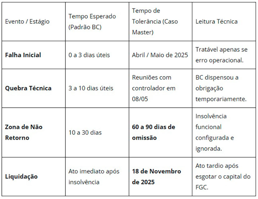 No caso Master, o BC ignorou alertas vermelhos constantes entre abril e novembro de 2025. Amparado na Lei 6.024/1974, a autoridade monetária deveria ter agido em dias, mas optou por uma “tolerância política” que permitiu a agonia do banco enquanto o mercado era inundado por ativos podres.