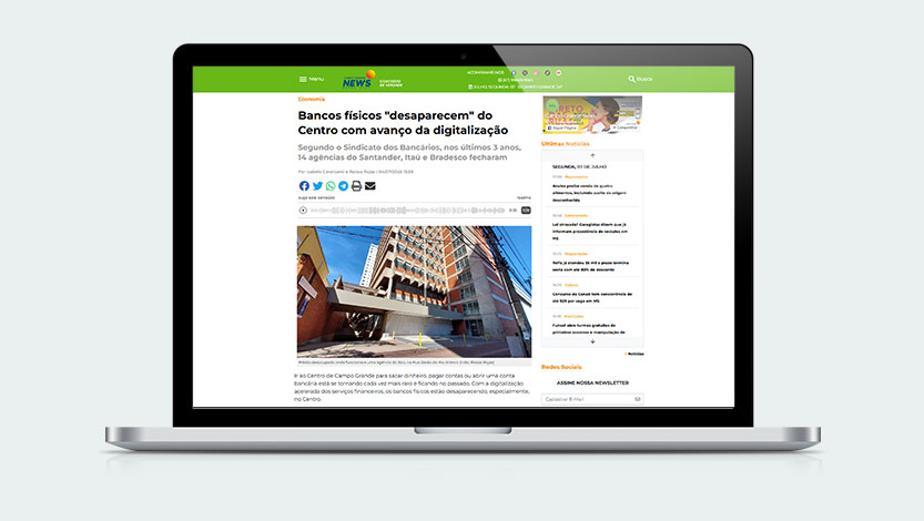 Na última sexta-feira, 4 de julho, o jornal online Campo Grande News publicou uma reportagem sobre o fechamento das agências bancárias no centro da capital sul-mato-grossense. A notícia relata que o movimento acontece devido a popularização dos bancos digitais e a facilidade que os aplicativos proporcionam entre clientes e bancos.