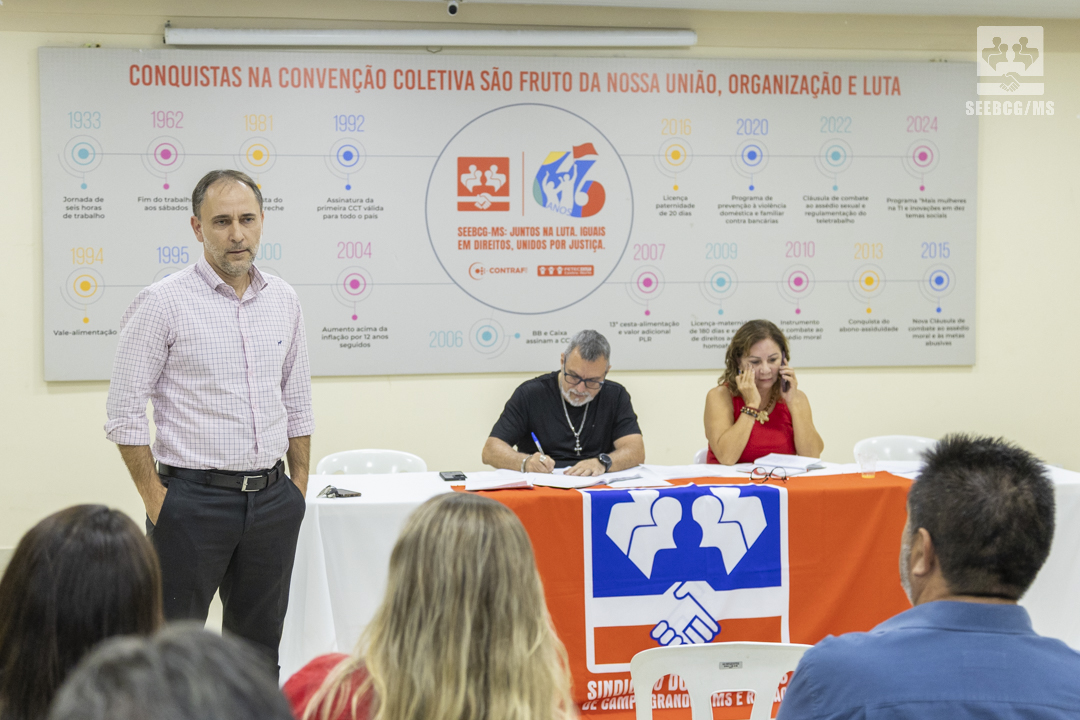 Na noite desta quarta-feira (10), o Sindicato dos Bancários de Campo Grande-MS e Região realizou a última reunião de 2025 de seu Conselho Diretivo. O encontro foi dedicado à avaliação das ações realizadas ao longo do ano e ao planejamento estratégico de 2026, um período considerado crucial para a categoria.