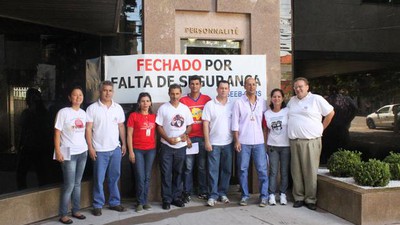 O Sindicato dos Bancários, preocupado com a segurança dos trabalhadores e trabalhadoras bancários/as, fechou as agências. Constatou-se o desvio de função: Bancários estavam fazendo o trabalho de vigilantes, atuando na abertura das portas giratórias.